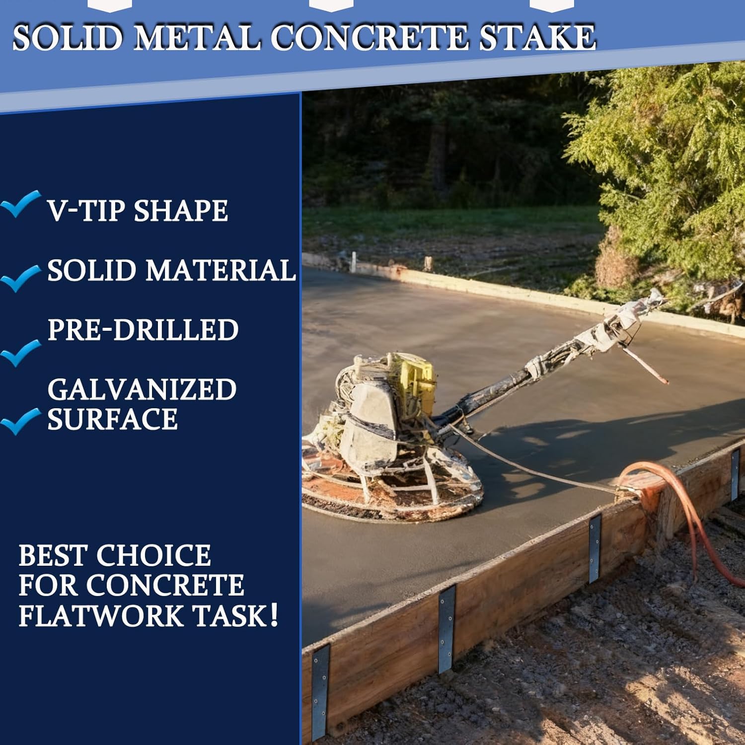 Solid Steel Concrete Stakes: Built for Durability & Versatile Use Whether you’re a professional contractor tackling large-scale builds or a DIY enthusiast sprucing up your backyard, these solid steel concrete stakes deliver the strength and flexibility to handle every project—no compromises on performance. Crafted from premium solid steel, they stand up to the toughest installation demands: you can hammer them into compacted clay for a commercial warehouse foundation, drive them through rocky soil to secure a residential driveway slab, or push them into gravel-rich terrain for industrial flooring support—they won’t bend or snap, even under heavy pressure. This ruggedness means you’ll avoid delays from fragile materials, whether you’re working on a municipal sidewalk project or a small patio pour at home. Each stake comes with accurately pre-drilled holes (0.23 inches in diameter) that work seamlessly with nails, heavy-duty screws, or bolts—no more wasting time on manual drilling, or risking steel splitting when you’re in a hurry. Spaced 2 inches apart, these holes let you customize your setup for any scenario: fasten them to concrete forms for a backyard retaining wall, secure wooden frames for a raised vegetable garden bed, or anchor a pop-up tent at a campsite—they’ll keep structures stable even when strong winds hit a outdoor market awning or a backyard greenhouse during a rainstorm. Forget struggling with hard soil—these stakes feature a sharp V-tip that cuts through the ground with minimal effort, so you won’t need special tools whether you’re installing them in hard clay for a neighborhood curb repair or compacted loam for a home’s foundation footings. They’re versatile enough to handle every concrete flatwork task: use them for a child’s playhouse slab, a commercial parking lot’s expansion joints, a sidewalk extension in a suburban neighborhood, or even to secure brackets for an outdoor deck’s support beams—you can trust they’ll keep forms in place during pouring and curing, ensuring a smooth finish every time. Designed to last through years of outdoor use, these heavy-duty stakes outperform lightweight alternatives, so you can reuse them across projects: take them from a spring garden bed setup to a fall fence repair, or from a commercial construction site to a weekend DIY shed build. Their utility goes far beyond concrete, too—repurpose them as form pins for a homemade concrete bench, anchors for a backyard shed to keep it from shifting in high winds, hose guides to keep your garden’s irrigation lines organized, survey markers to map out a new landscaping project, supports for young fruit trees to protect them from storms, or even to reinforce a broken fence post that’s leaning after a winter storm. To stand up to the elements in every scenario—from rainy coastal climates to snowy northern winters—each stake is finished with a high-quality silver galvanized coating (zinc-bonded to the steel surface). Unlike basic paint that chips off after a few months of sun and rain, this galvanized layer creates a tough barrier against humidity in a greenhouse, frost on a winter construction site, or extreme temperature swings in a desert backyard. It even offers “sacrificial protection”: if the coating gets scratched while you’re hammering it into rocky soil, the zinc corrodes first to shield the underlying steel. The clean silver finish looks professional, too—perfect for visible spots like a front-yard garden bed or a commercial property’s landscaping borders. They combine strength, ease of use, and versatility—all backed by a rust-resistant coating that ensures years of reliable performance, no matter the project. Whether you’re building a commercial warehouse, repairing a neighborhood sidewalk, or creating a backyard garden, these stakes are the durable choice that works as hard as you do.
