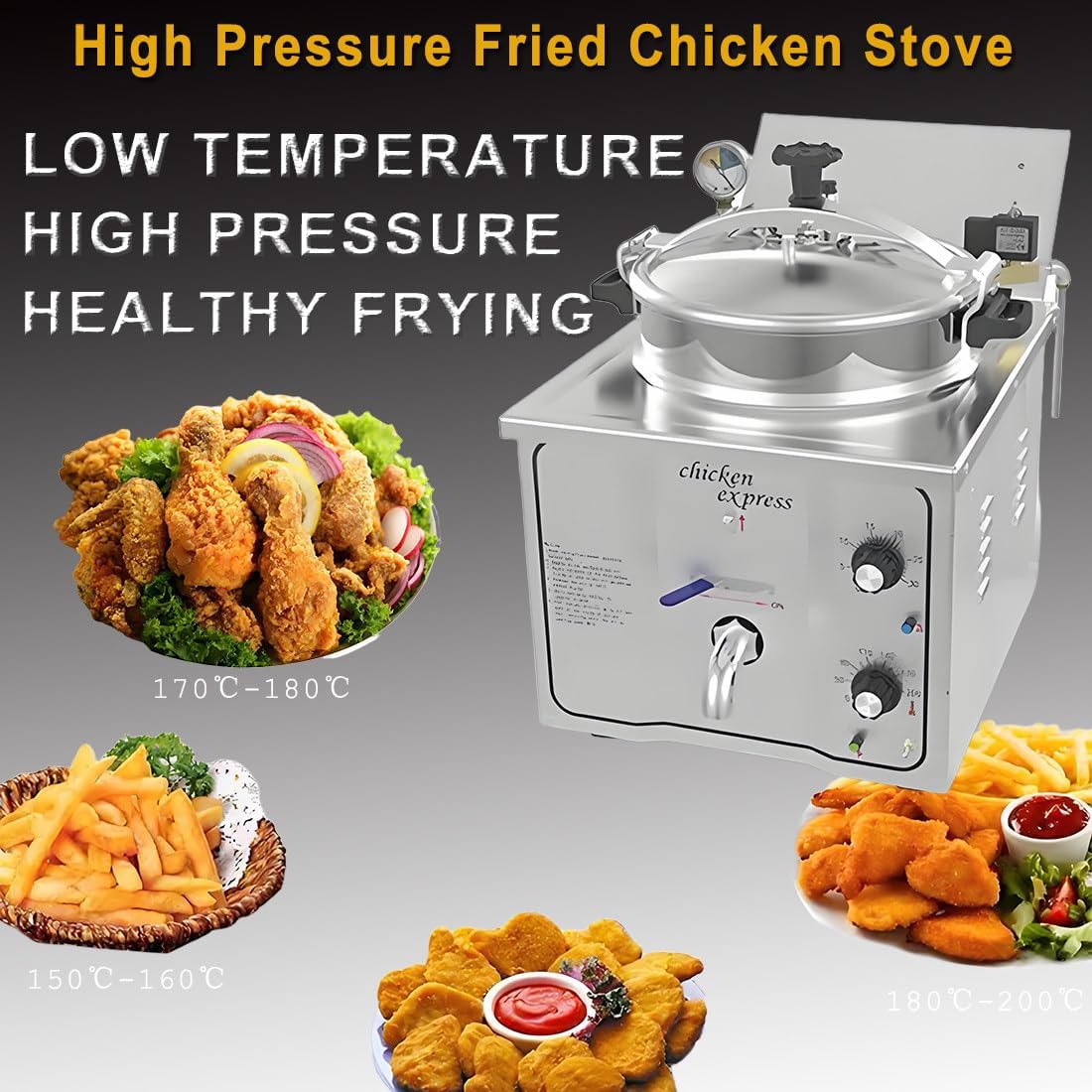 Enhance your food service operations with our 16L pressure fryer, engineered for quick preparation of crispy chicken, golden fries, and seafood in just 5 minutes. It incorporates low oil absorption technology and a comprehensive safety system, making it a perfect fit for restaurants, food trucks, and night markets.