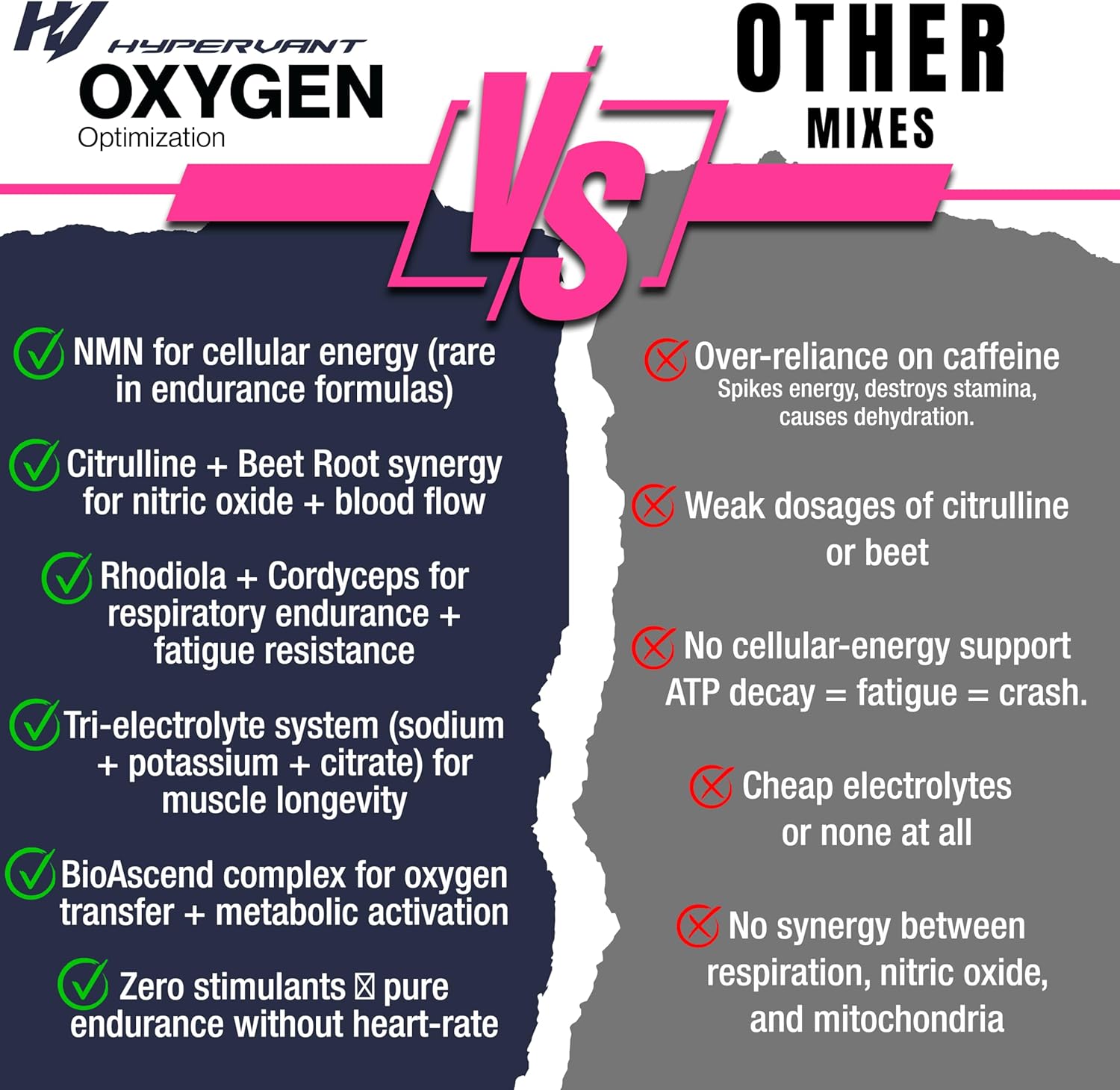 Hypervant Oxygen is an elite, stimulant-free daily performance supplement designed to power endurance, longevity, clean energy, and nitric oxide support in one advanced drink mix. Featuring NMN for cellular energy and healthy aging, adaptogenic cordyceps for oxygen utilization and resilience, plus ingredients that support circulation, hydration, and pump, Hypervant Oxygen gives you an extra boost for training, work, and life—without sugar, jitters, or crash.* Just tear a stick, mix with water, and experience smooth, sustained performance you can use every day.