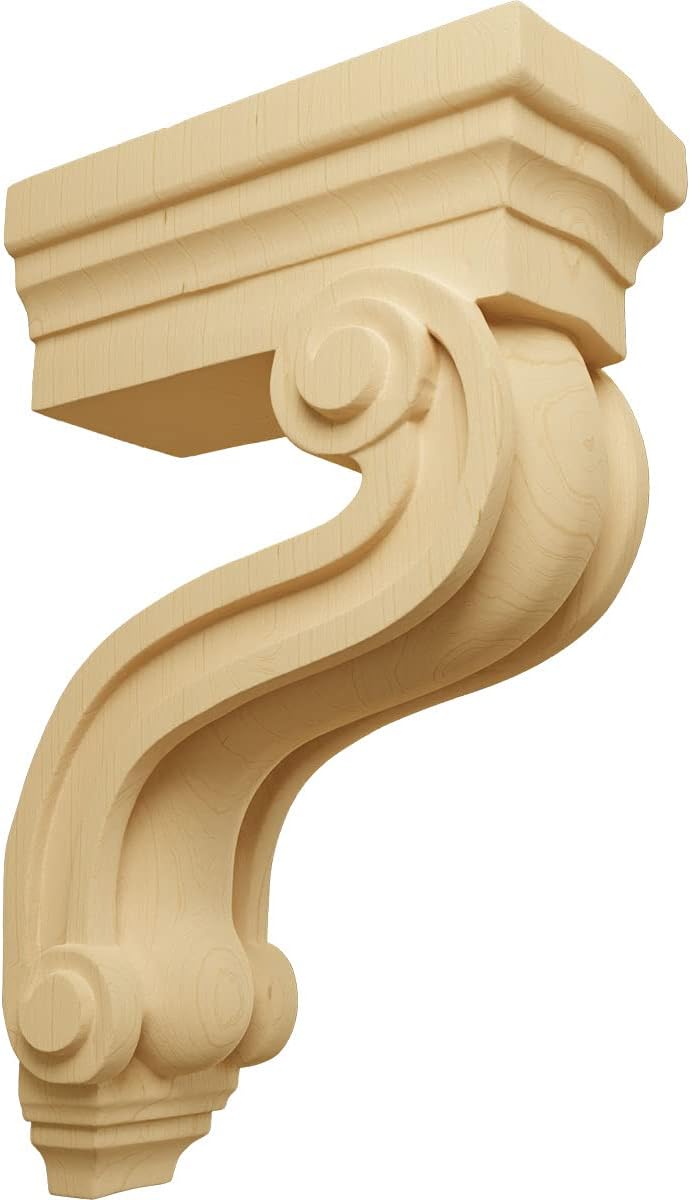 Beautiful wood brackets and corbels are the perfect choice to give detail or support to countertops, mantels, entertainment centers, range hoods, shelving and more. Available in more than 70 styles and 250 sizes, there is a design perfect for you. Offered in a range of styles from simple, minimalist shapes to elaborate carvings in floral, natural, and acanthus motifs. Our corbels and brackets are offered in seven wood types including alder, cherry, maple, red oak, walnut, mahogany, or paint grade rubberwood.