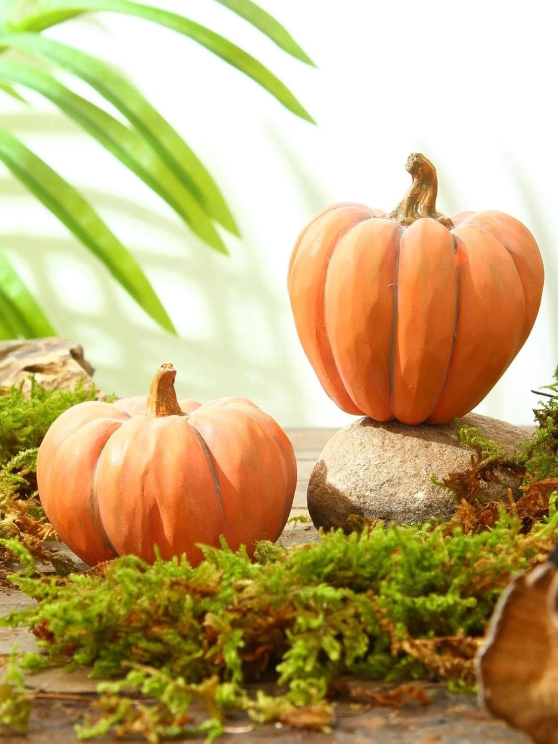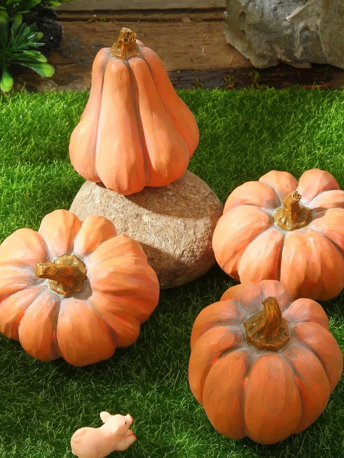 Fake Pumpkins, 4 Pcs Pumpkin Design Decorative Statue, Foam Plastic Fake Faux Artificial Pumpkins for Halloween Fall Harvest Festival Home Table Decor, Halloween Indoor DecorationDescription:Size: 2.7x2.6 inColor: OrangeQuantity: 4 PcsMaterial: Plastic ABSType: Resin Statues & SculpturesOccasion: Halloween Pattern: PumpkinTheme: HalloweenUse scenes, perfect props for autumn decoration:- Fill wooden boxes or galvanized trays with velvet pumpkins, autumn leaves, pine cones and various harvest items to design the centerpiece of the farmhouse Thanksgiving table.- Use as a scatter table for autumn themed weddings, Thanksgiving dinner tables or other special ocns.- Combine with other autumn favorite decorations to fill bowls, baskets, tins, vases, and trays to create a unique display effect.- Add it to autumn wreaths, garlands or flower arrangements, simple and elegant.- Surround your country lanterns with velvet pumpkins and display them on the floor.