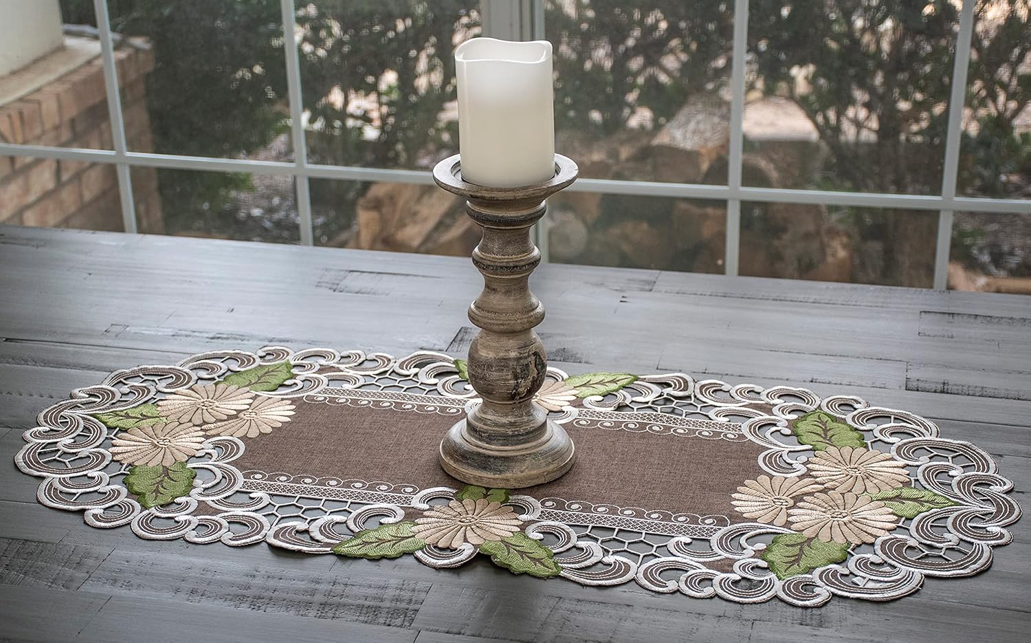 Our Gold Daisy on Brown 15" X 33" Runners are a stunning blend of classic and contemporary styles. These exquisite pieces feature delicate brown doilies adorned with shimmering gold daisies, adding a touch of luxury to any space. Crafted with meticulous attention to detail, these runners are perfect for adding a touch of sophistication to your dining table, coffee table, or dresser. All of our items are 100% polyester which makes them long-lasting with simple maintenance. It’s a perfect gift for any occasion such as weddings, birthdays, Christmas, and even Mother’s Day. Ships easily – since it is fabric – to those friends and loved ones whose gift needs to be mailed…..they don’t break!