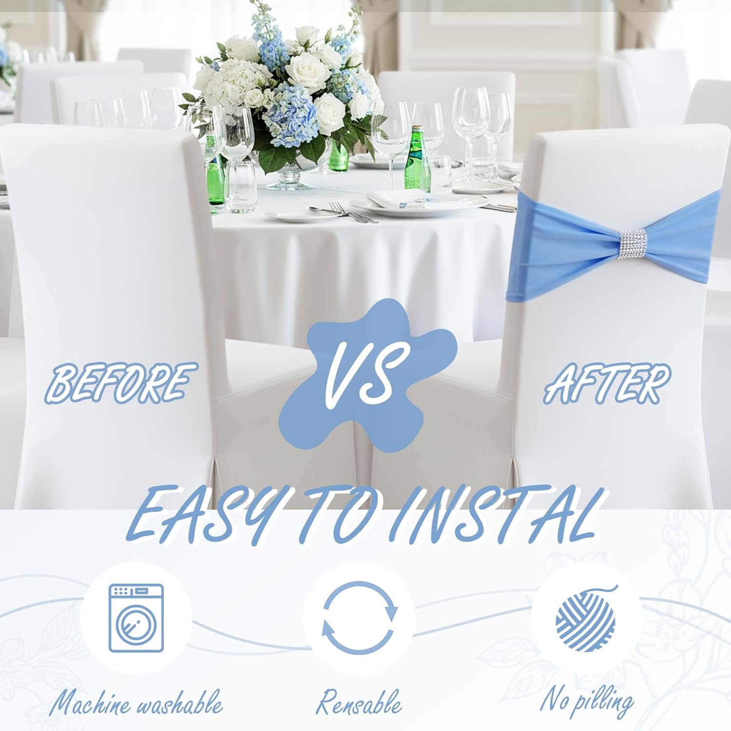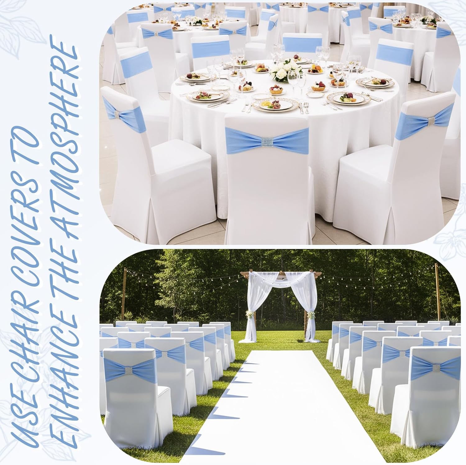 Features: Eye Catching light blue Hue: Available in a striking light blue color, these chair sashes make a bold statement in any setting. This vibrant hue is perfect for those looking to add a pop of color to their decor, fulfilling the desire for personalization and style in their events. Multicolor Options for Personalization: Our chair sashes are available in a variety of colors, providing customers with numerous choices to match their event themes. This rich selection caters to diverse preferences. Specifications: Material: mainly Polyester Color: light blue, silver Size: about 4.7 x 13.0 inches/ 12 x 33 cm Package includes: 50 X chair sashes Notes: Manual measurement, please allow slight errors on size. The color may exist a slight difference due to different screen displays