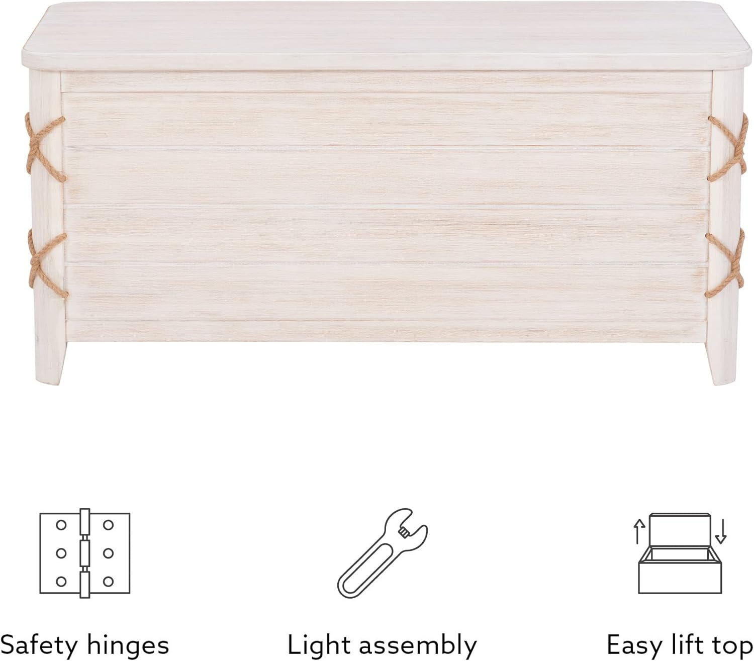 Whether you need space to store linens at the foot of the bed or a coffee table to round out your traditional living ensemble, this rope cedar chest is the perfect piece. Painted in a beachy white finish, paneled details and genuine rope trim add interest to this piece. Anchored by safety hinges, the top lifts to reveal ample storage space lined in cedar to keep your items smelling fresh for years. Supporting up to 275 pounds, this chest doubles as an extra seat.